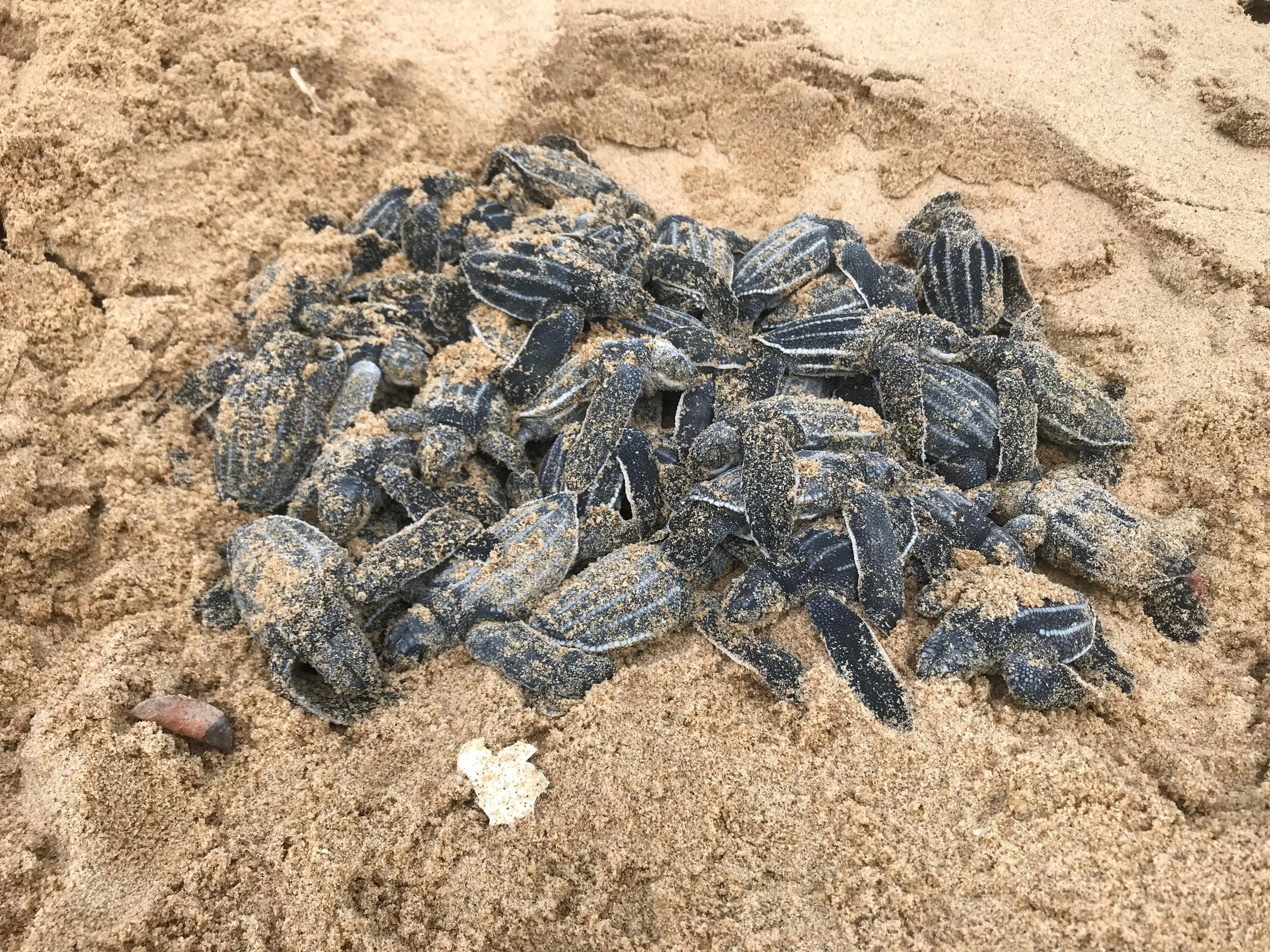 Across roughly 900+ nests monitored, the biggest losses came from predators, with erosion/high tides next. On this coast that typically means ghost crabs working into chambers, monitor lizards, jackals/dogs, and small carnivores/birds taking exposed eggs or hatchlings. Heavy surf and spring tides can undercut the dune face or wash out a nest entirely. The fix isn’t complicated: keep access tidy, keep groups small and quiet, and protect dune vegetation. Stable, lightly used dune faces and good plant cover make nests harder to find, harder to dig up, and less likely to sit in the path of the next big swell.